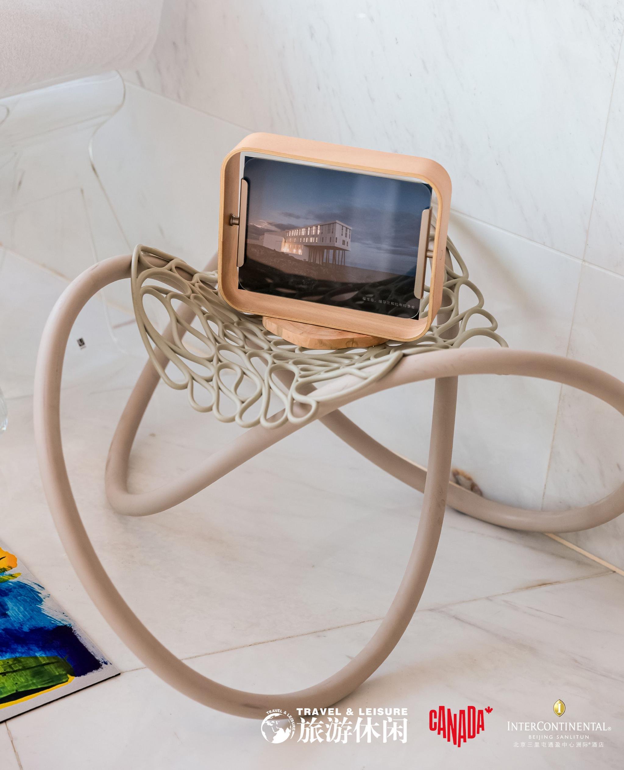 曾包揽过四项国际顶级设计大奖的著名工业设计师时晓曦先生通过本次主题房创作的参与,对加拿大设计有了更多的关注和了解。他也分享了这次展出作品Knot家具与加拿大的连接点——加拿大原生态的自然状态和广阔的疆域给予了想象极大的空间,像极了东方文化中的留白之美。时晓曦先生希望通过自己在主题房陈设的Knot家具,与客房内的其他加拿大品牌形成中国设计与加拿大设计的对话与互动。